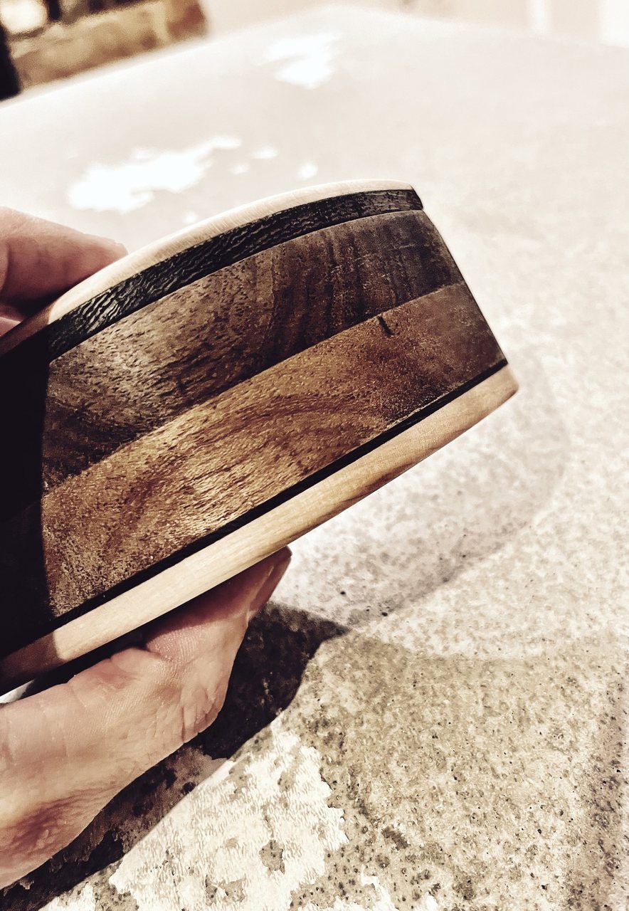 Laurel, Ahorn und Apfel habe ich eine edle Auswahl meiner Lieblingshölzer verwendet. Besonders tricky war der Deckel,