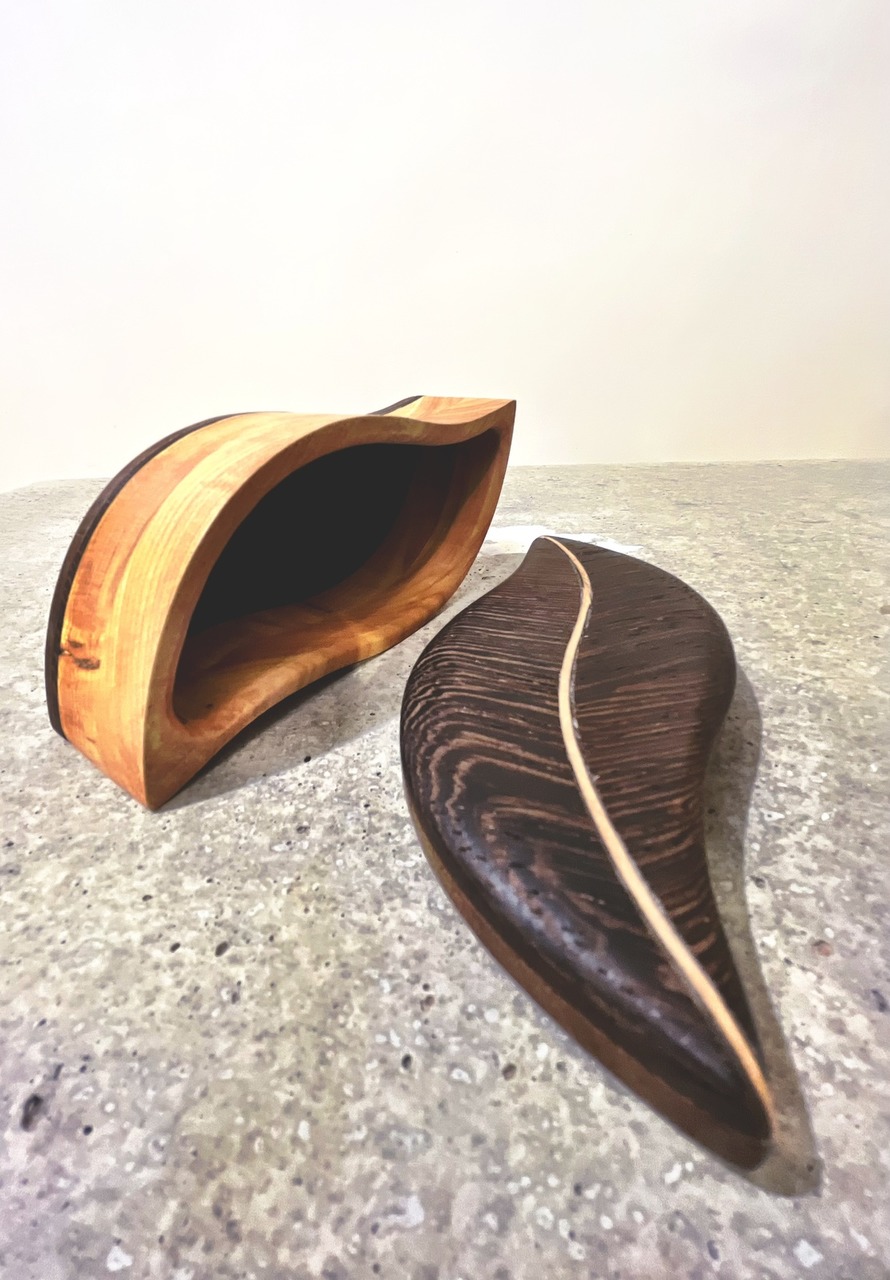 Die Idee, eine kleine Box in Form eines Blattes zu bauen habe ich gestern und heute in die Tat umgesetzt. Mit Wenge,